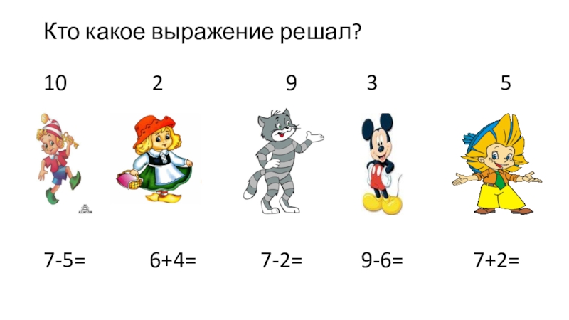 2 9 3 5 7-5= 6+4= 7-2= 9-6= 7+2=