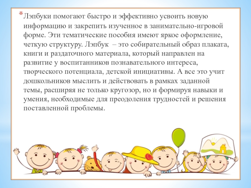 Слайд 8Лэпбуки помогают быстро и эффективно усвоить новую информацию и закрепить изученное