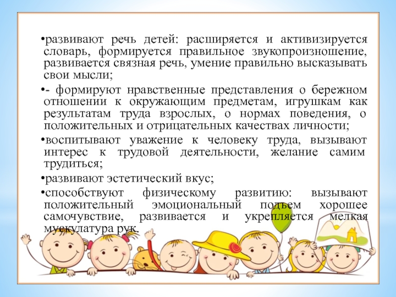 воспитывают уважение к человеку труда, вызывают интерес к трудовой деятельности, желание самим трудиться;