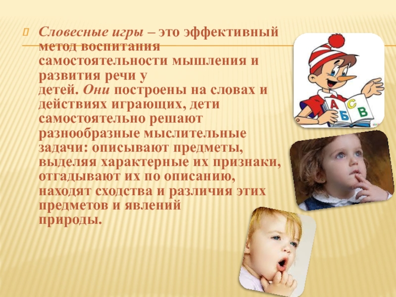 Слайд 10Словесные игры – это эффективный метод воспитания самостоятельности мышления и развития речи