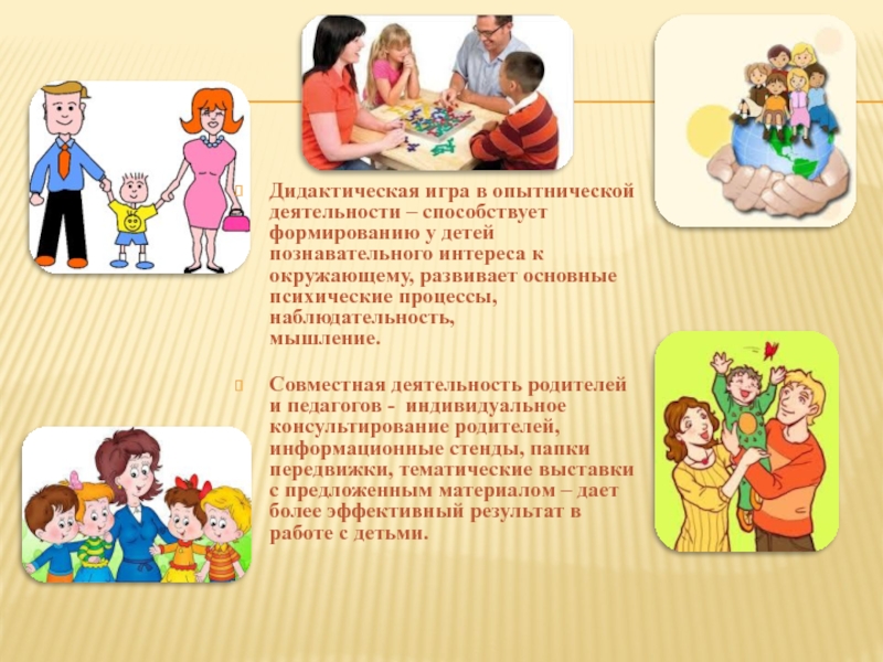 Слайд 11Дидактическая игра в опытнической деятельности – способствует формированию у детей познавательного
