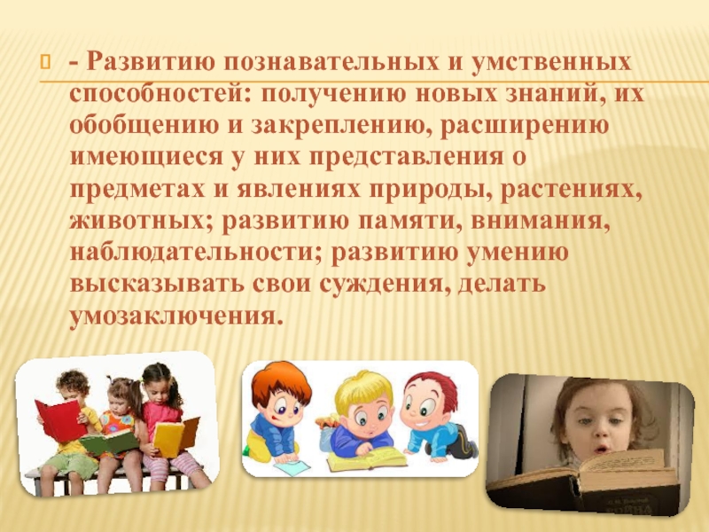 Слайд 5- Развитию познавательных и умственных способностей: получению новых знаний, их обобщению и