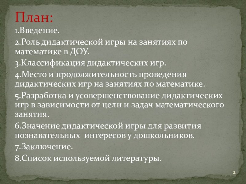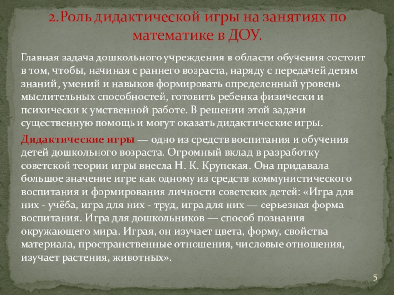 2.Роль дидактической игры на занятиях по математике в ДОУ.
