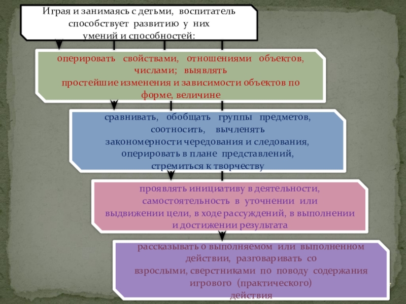 Слайд 27Играя и занимаясь с детьми, воспитатель способствует развитию у них