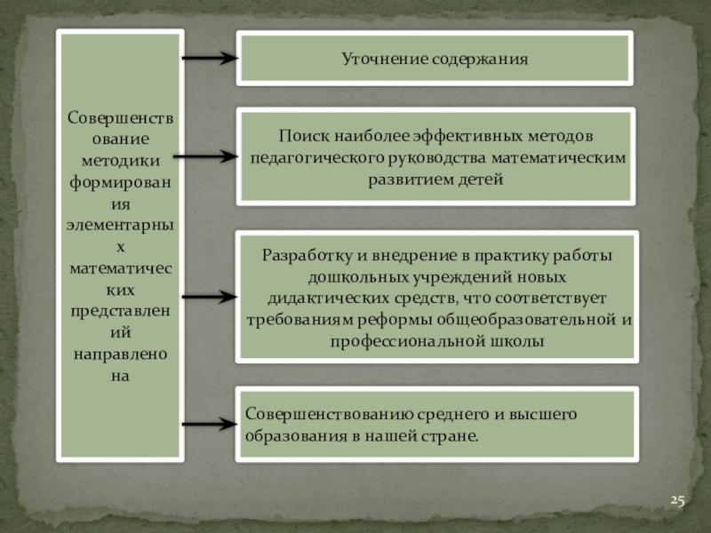 Слайд 25Совершенствование методики формирования элементарных математических представлений направлено на