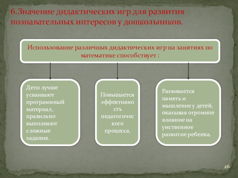 Слайд 266.Значение дидактических игр для развития познавательных интересов у дошкольников.