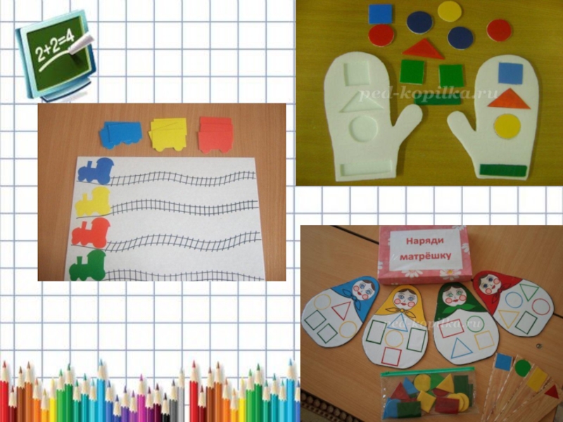 образы. * Закрепить умение различать понятия величины: большой, чуть меньше и самый маленький. * Упражнять в умении различать геометрические фигуры. * Развивать навык ориентировки на листе.