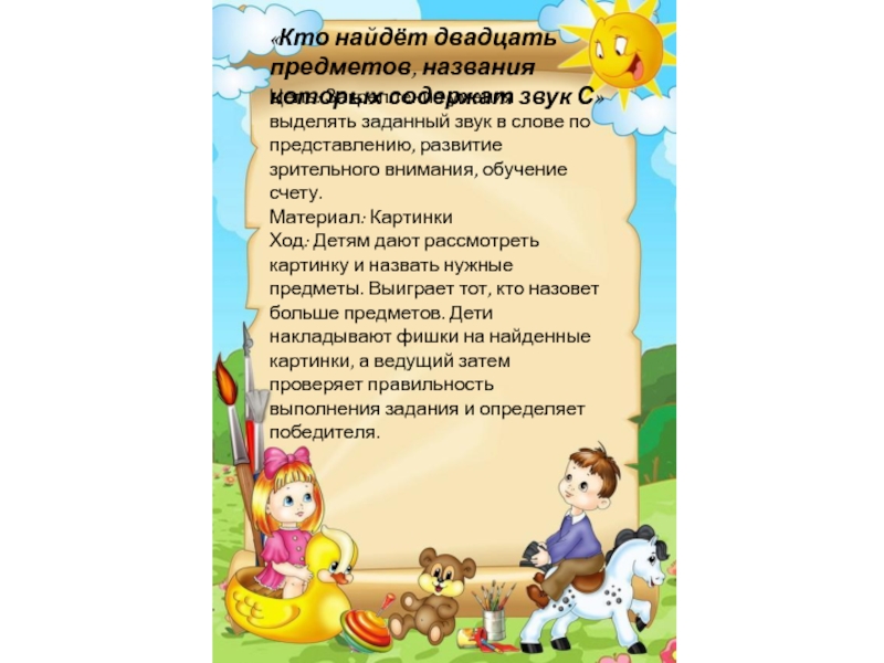 «Кто найдёт двадцать предметов, названия которых содержат звук С»