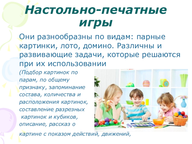 Они разнообразны по видам: парные картинки, лото, домино. Различны и