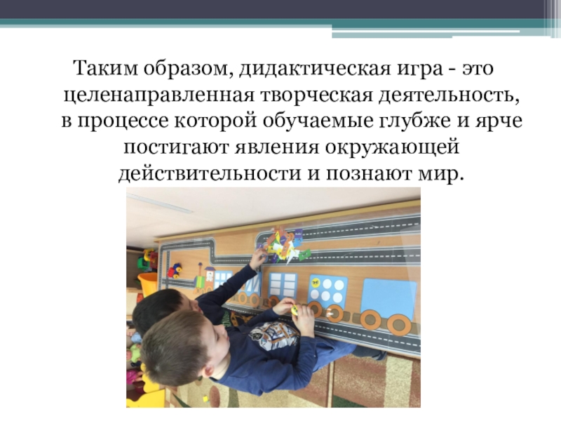 Слайд 14Таким образом, дидактическая игра - это целенаправленная творческая деятельность, в процессе