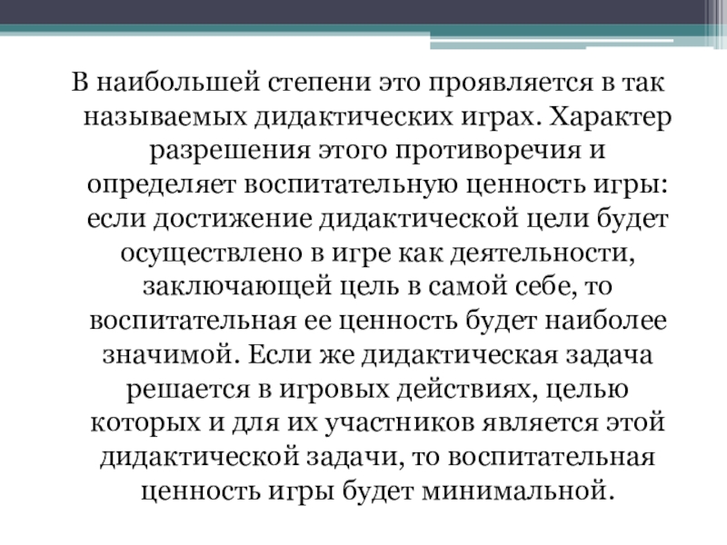 Слайд 9В наибольшей степени это проявляется в так называемых дидактических играх. Характер