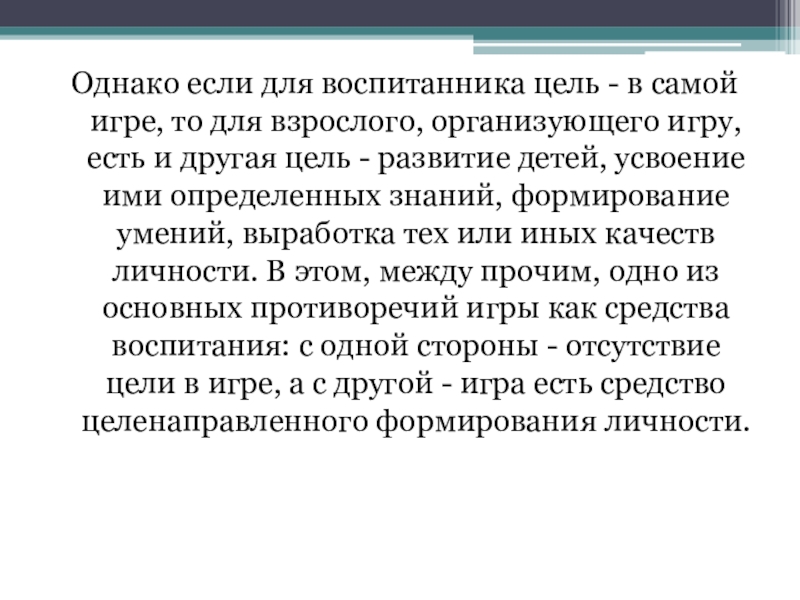 Слайд 8Однако если для воспитанника цель - в самой игре, то для