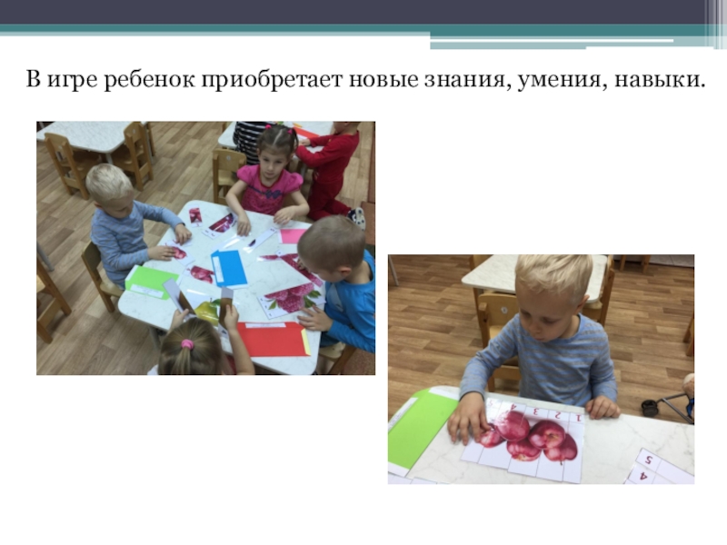 Слайд 4В игре ребенок приобретает новые знания, умения, навыки.