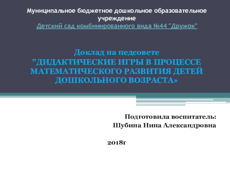 "ДИДАКТИЧЕСКИЕ ИГРЫ В ПРОЦЕССЕ МАТЕМАТИЧЕСКОГО РАЗВИТИЯ ДЕТЕЙ ДОШКОЛЬНОГО ВОЗРАСТА»