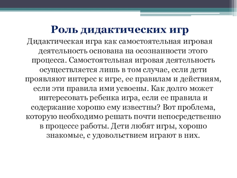 Дидактическая игра как самостоятельная игровая деятельность основана на осознанности