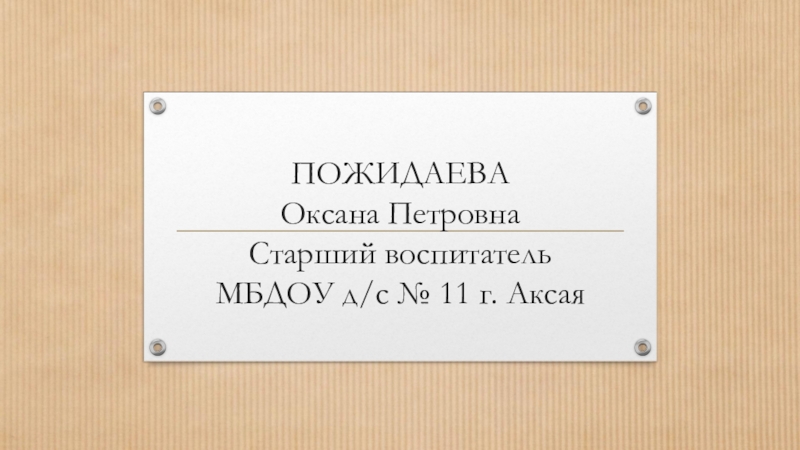 Слайд 1ПОЖИДАЕВА Оксана Петровна Старший воспитатель МБДОУ д/с № 11 г. Аксая