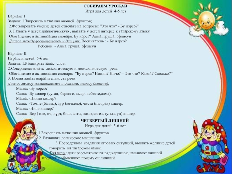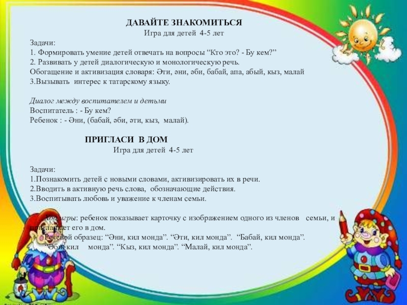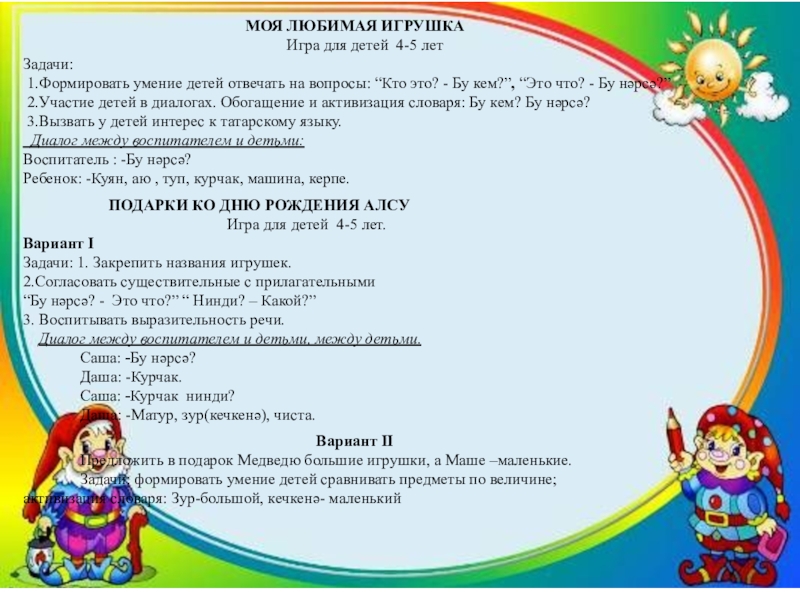 3. Развить у детей диалогическую , вызвать у детей интерес к татарскому языку.