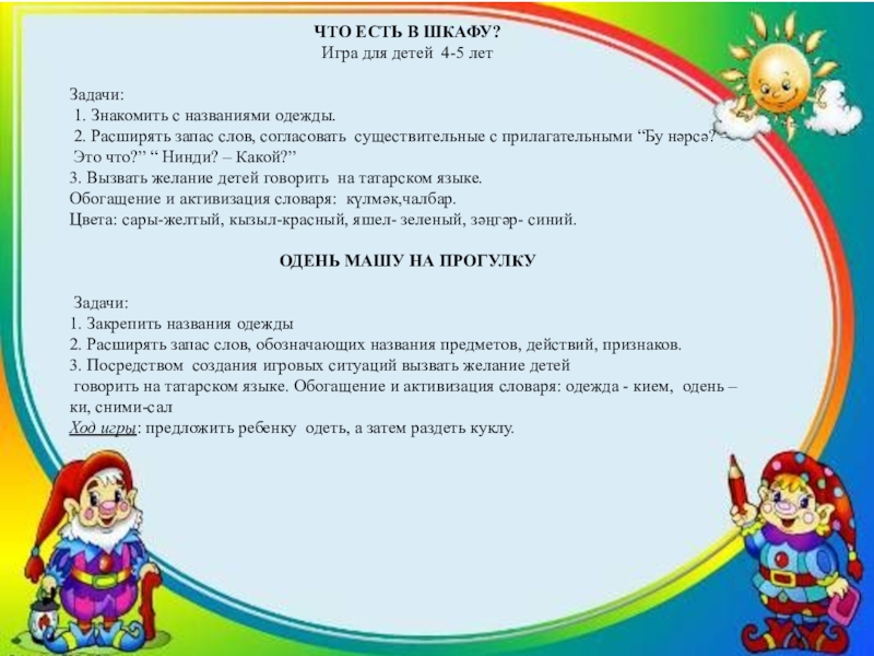 2. Обогащение и активизация словаря: “Бу нәрсә? Нинди? Ничә? – Это что? Какой? Сколько?”