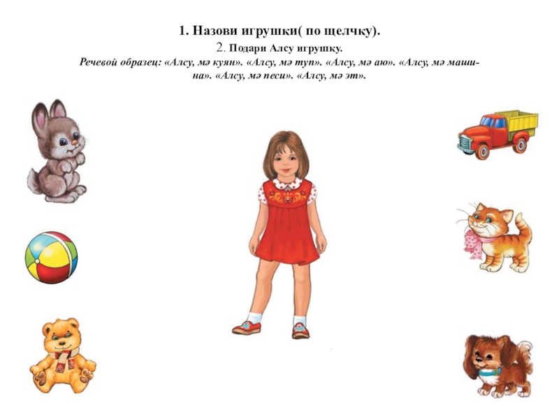 2.Формировать умение детей отвечать на вопросы: “Это что? - Бу нәрсә?”