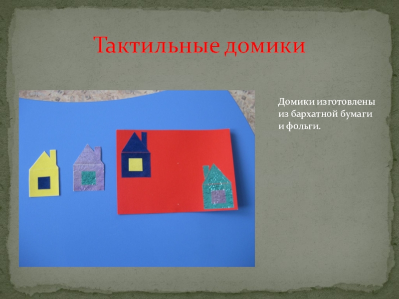 Тактильные домикиДомики изготовлены из бархатной бумаги и фольги.