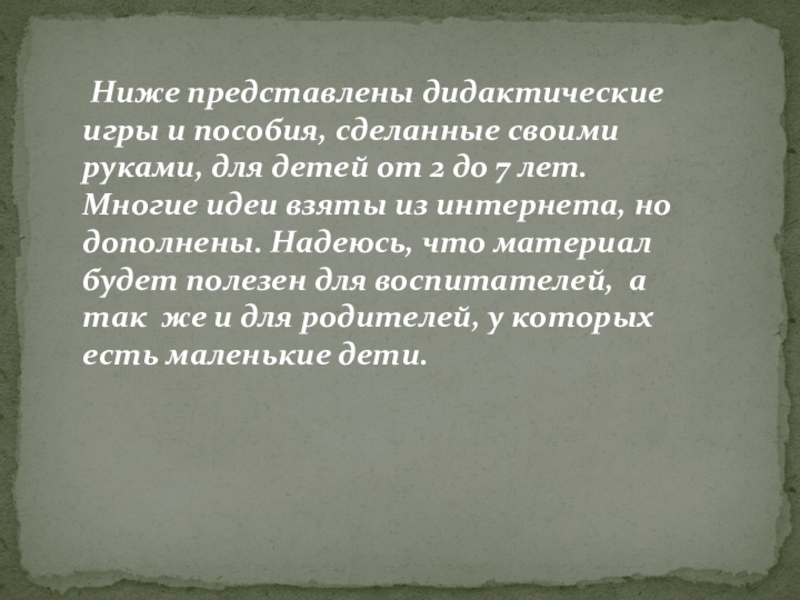 Слайд 4 Ниже представлены дидактические игры и пособия, сделанные своими руками, для детей