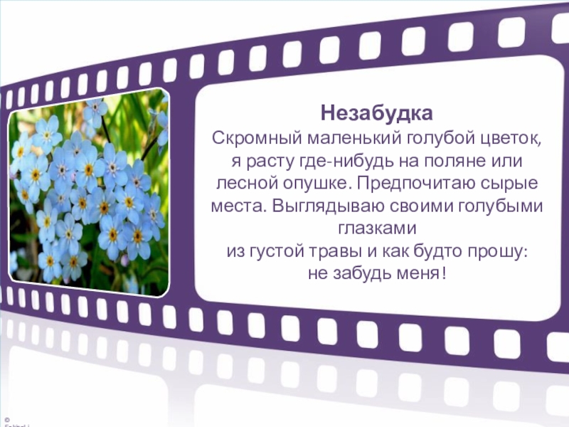 я расту где-нибудь на поляне или лесной опушке. Предпочитаю сырые места. Выглядываю своими голубыми глазками