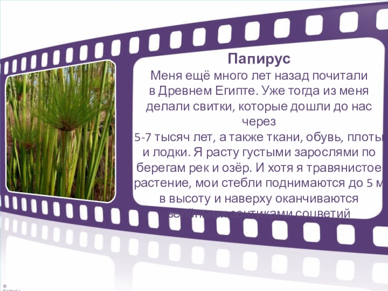 и лодки. Я расту густыми зарослями по берегам рек и озёр. И хотя я травянистое растение, мои стебли поднимаются до 5 м