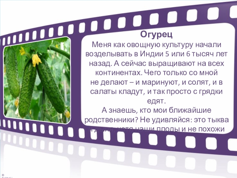 Меня как овощную культуру начали возделывать в Индии 5 или 6 тысяч лет назад. А сейчас выращивают на всех континентах. Чего только со мной