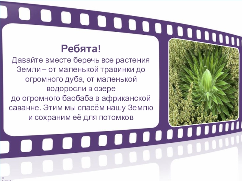 Давайте вместе беречь все растения Земли – от маленькой травинки до огромного дуба, от маленькой водоросли в озере