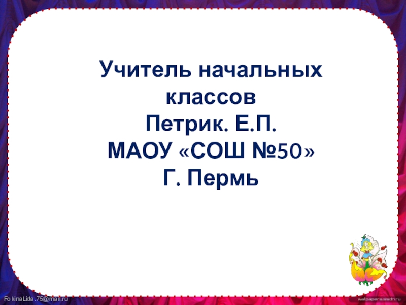 Учитель начальных классовПетрик. Е.П.МАОУ «СОШ №50»Г. Пермь