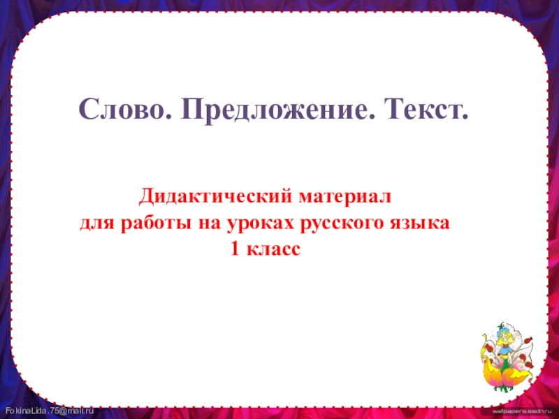 Презентация, доклад на тему Дидактический материал для уроков повторения и закрепления изученного материала на уроках русского языка Слово. Предложение. Текст (1 класс)