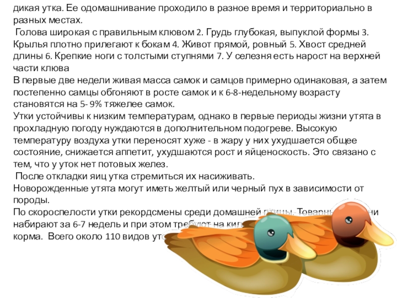 Слайд 3дикая утка. Ее одомашнивание проходило в разное время и территориально в