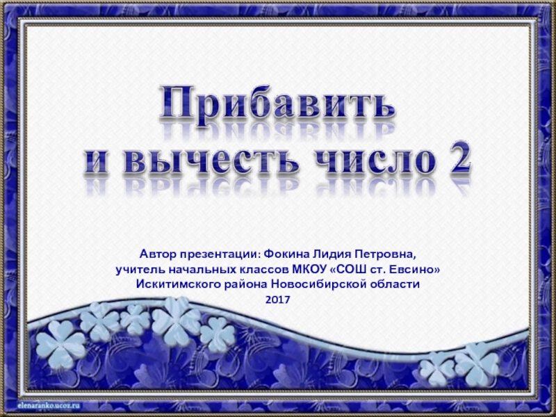 Автор презентации: Фокина Лидия Петровна,учитель начальных классов МКОУ «СОШ ст. Евсино»Искитимского района Новосибирской области2017