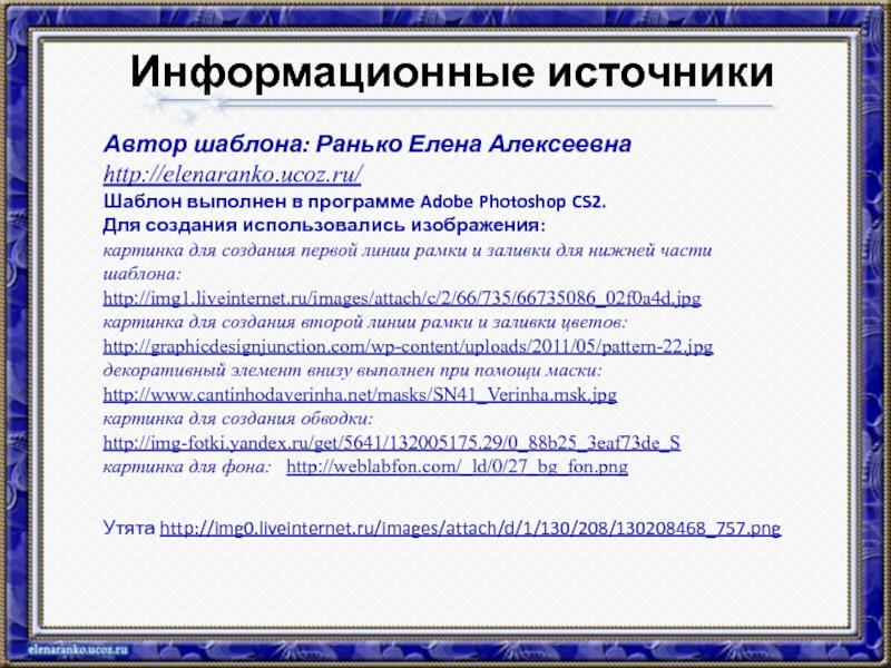 Слайд 6Автор шаблона: Ранько Елена Алексеевна http://elenaranko.ucoz.ru/