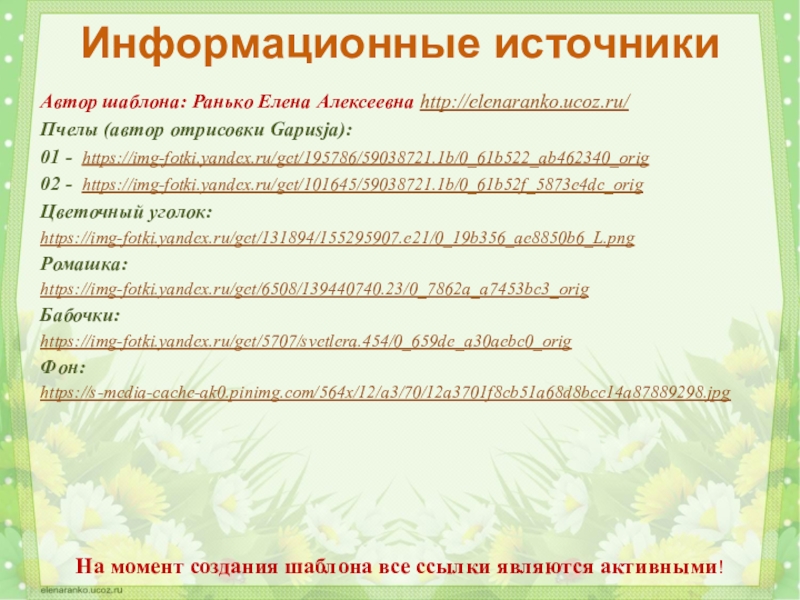 На момент создания шаблона все ссылки являются активными!
