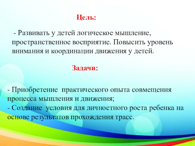 - Создание условия для личностного роста ребенка на основе результатов прохождения трасс.
