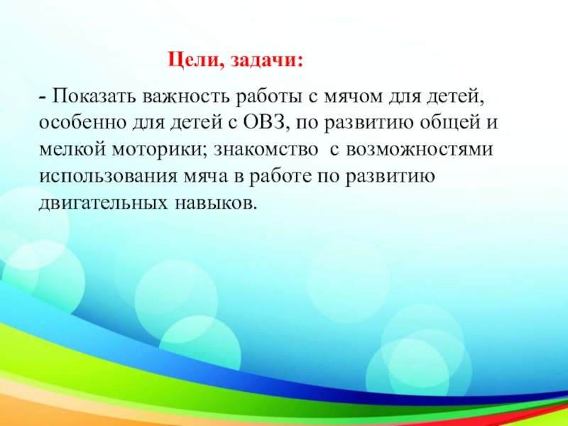 - Показать важность работы с мячом для детей, особенно для