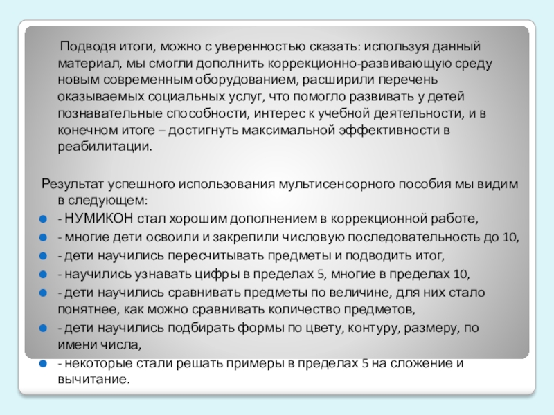 - НУМИКОН стал хорошим дополнением в коррекционной работе,