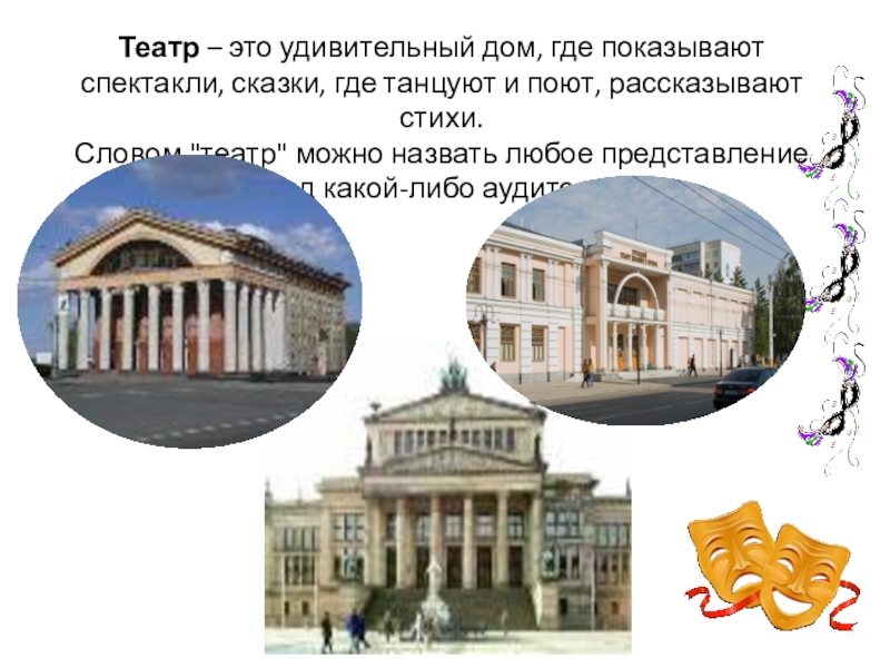 Театральный занавес – полотнище, закрывающее сцену от зрительного зала. Занавесы шьются из плотной окрашенной ткани, собираются в складки и украшаются эмблемами театра или широкой бахромой, пришитой к низу занавеса. Спектакль начнется, как только занавес поднимется или раздвинется, так как они бывают раздвижные или поднимающиеся.