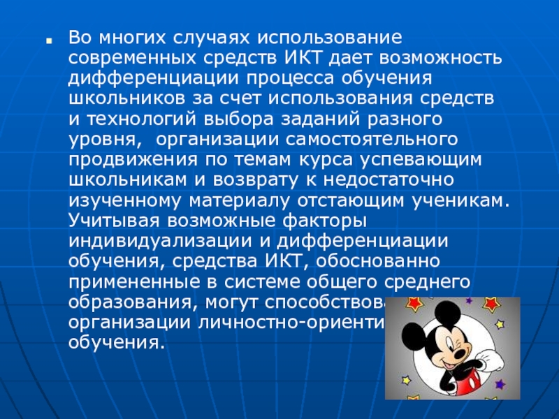 Слайд 23Во многих случаях использование современных средств ИКТ дает возможность дифференциации процесса