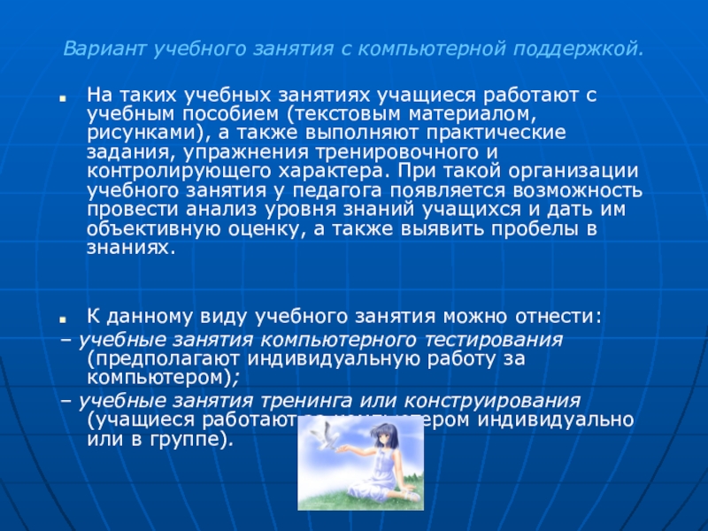 Слайд 19Вариант учебного занятия с компьютерной поддержкой.
