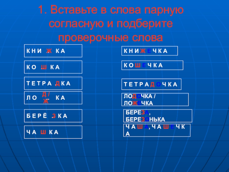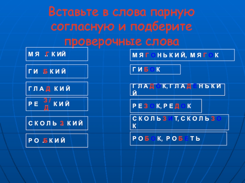 Слайд 141. Вставьте в слова парную согласную и подберите проверочные слова