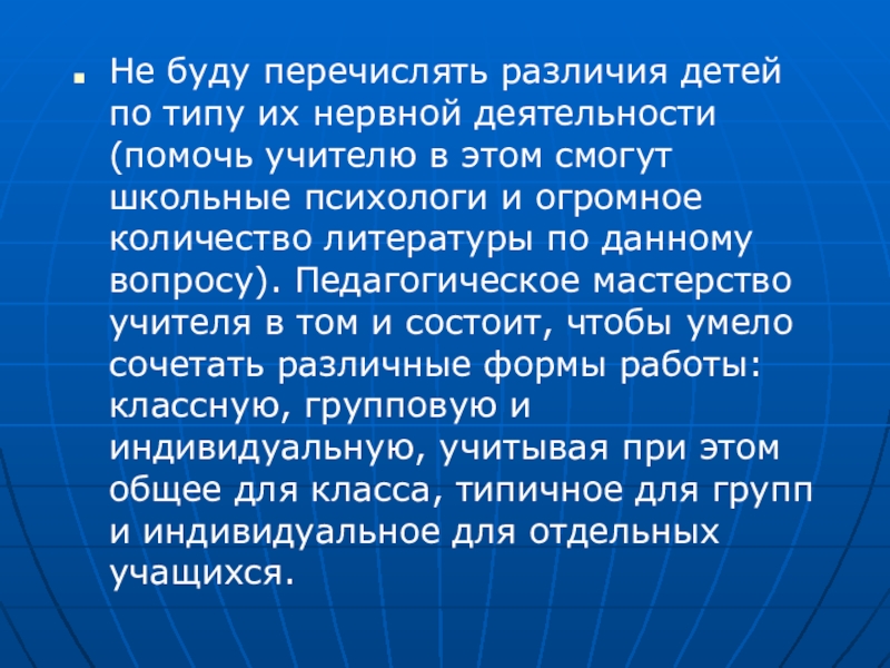 Слайд 5Не буду перечислять различия детей по типу их нервной деятельности (помочь