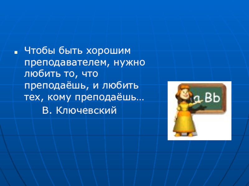 Слайд 2Чтобы быть хорошим преподавателем, нужно любить то, что преподаёшь, и любить