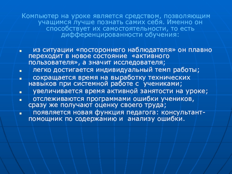 Слайд 26Компьютер на уроке является средством, позволяющим учащимся лучше познать самих себя.