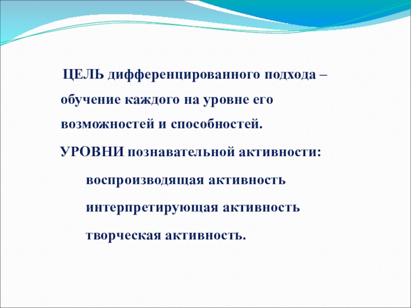 Презентация, доклад на тему Дифференцированный подход в обучении как средство развития познавательной активности