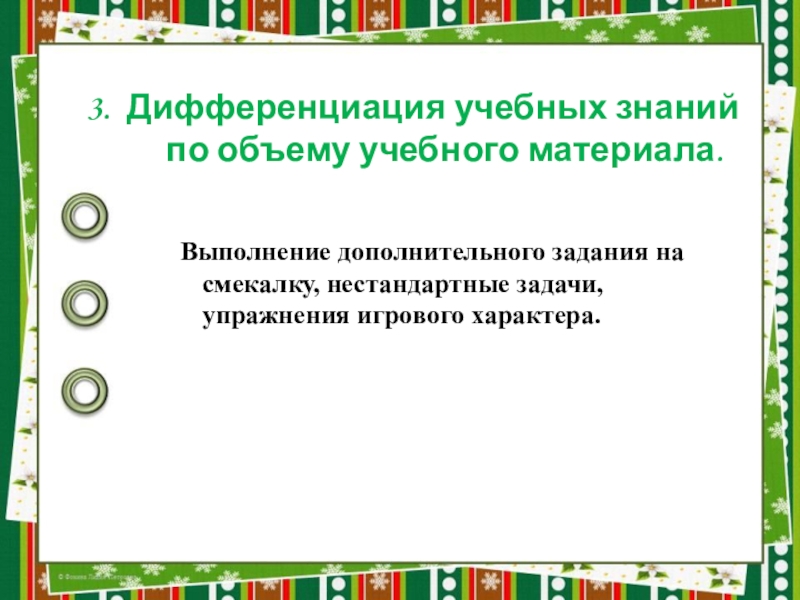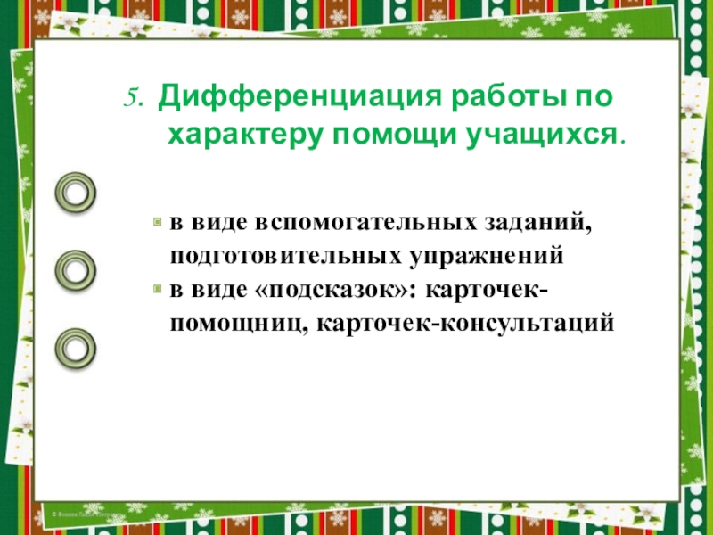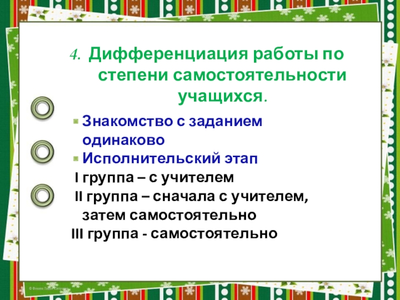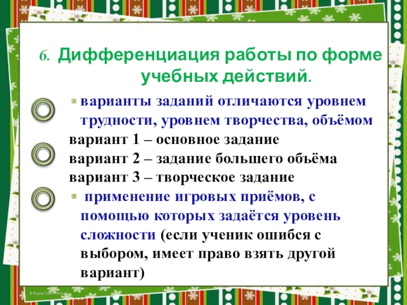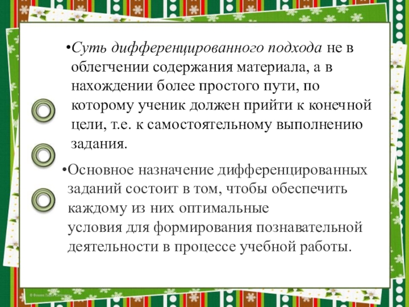 Основное назначение дифференцированных заданий состоит в том, чтобы обеспечить каждому из них оптимальные условия для формирования познавательной деятельности в процессе учебной работы.