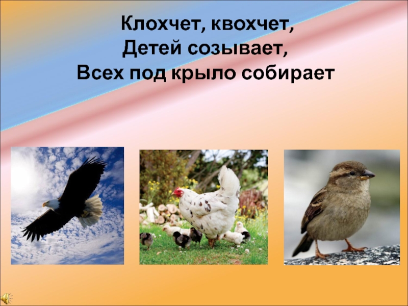 Слайд 6 Клохчет, квохчет, Детей созывает, Всех под крыло собирает