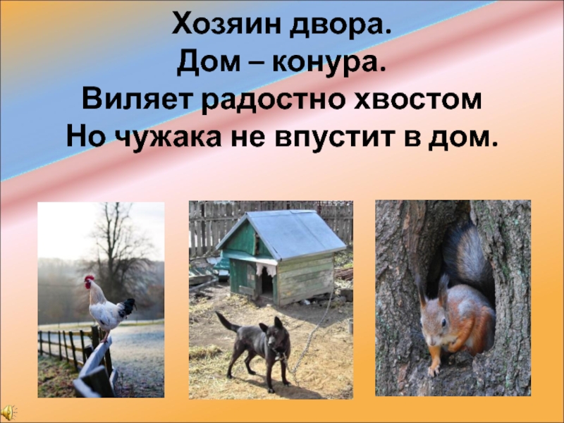 Слайд 11Хозяин двора. Дом – конура. Виляет радостно хвостом Но чужака не впустит в дом.