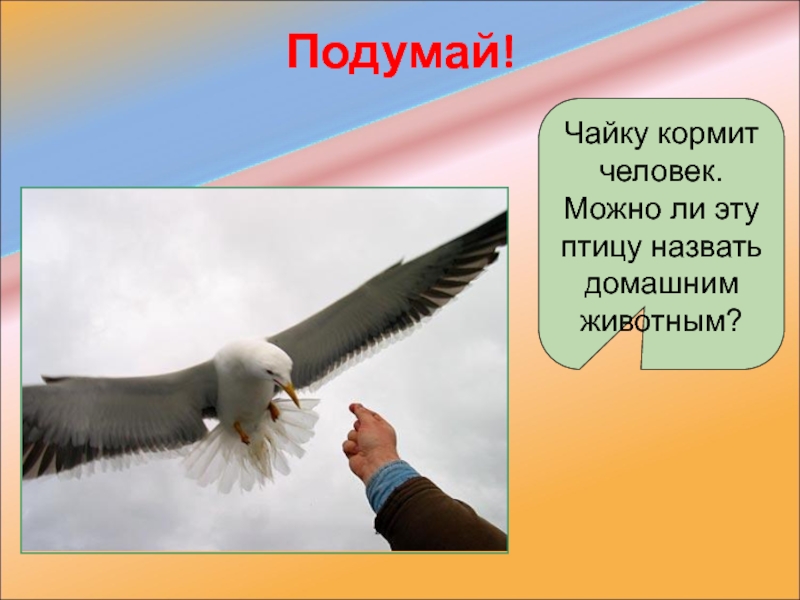 Подумай!Чайку кормит человек. Можно ли эту птицу назвать домашним животным?